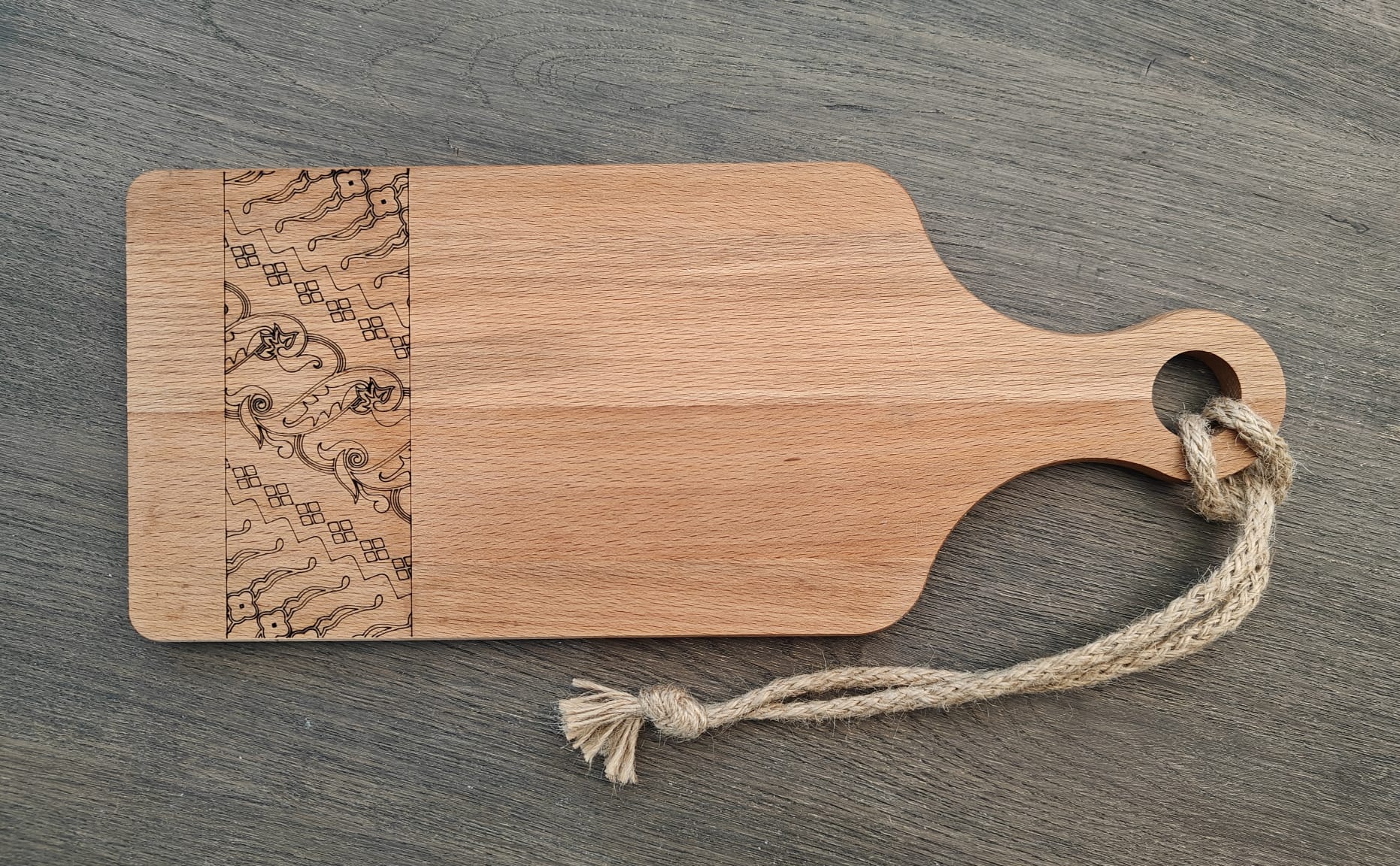 Het plankje is gemaakt van Europees beukenhout en voorzien van een oliecoating voor een lange levensduur. De afmeting is 34 x 14 x 1,3 cm. Handwas is aanbevolen.