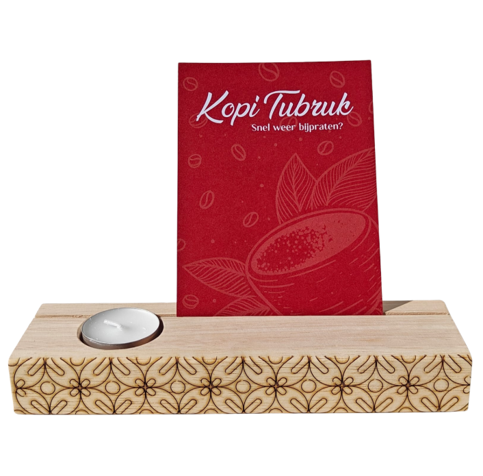 Voor een extra speciale touch is de mooie batik Kawung print gegraveerd op de voorkant van de kaarthouder. Inclusief waxinelichtje.