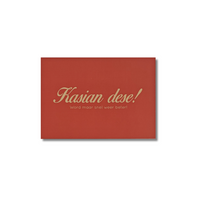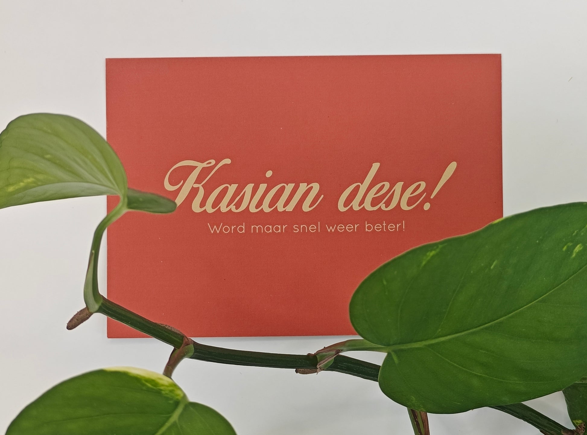 Kasian betekent ‘zielig’ en dese betekent zoveel als ‘dit, jij’. Met andere woorden, ‘Zielige jij!!’ Een kaartje voor iemand die wel wat beterschap kan gebruiken!