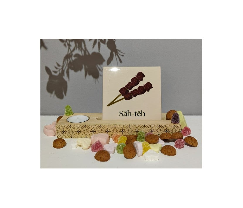Hier komt jouw keramieken tegeltje supermooi in te staan! Helemaal stralend met het kaarsje ernaast. Ook weer met de mooie batik print voorop gegraveerd, gewoon omdat het mooi is, maar misschien ook wel net die subtiele touch naar jouw Indische roots. Zo voel je toch elke keer weer een connectie als je er naar kijkt.